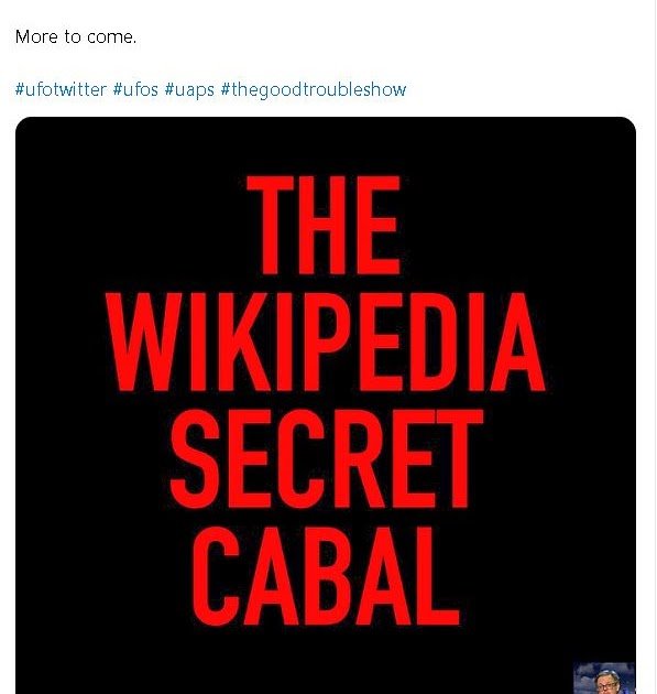 We have just recently witnessed one of the funniest episodes of UFOlogical stupidity in recent memory: Some of UFO’s top Disclosure Warriors dramatically announce they have uncovered a “secret cabal” manipulating Wikipedia articles about UFOs. Matt Ford of the Good Trouble Show posted this dramatic announcement on TwitX on January 21: