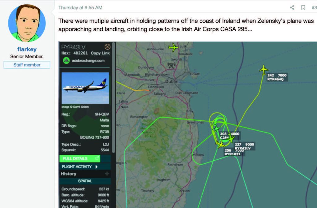 A Metabunk post showing planes holding for Zelenskyy’s arrival, which might have been mistaken for drones