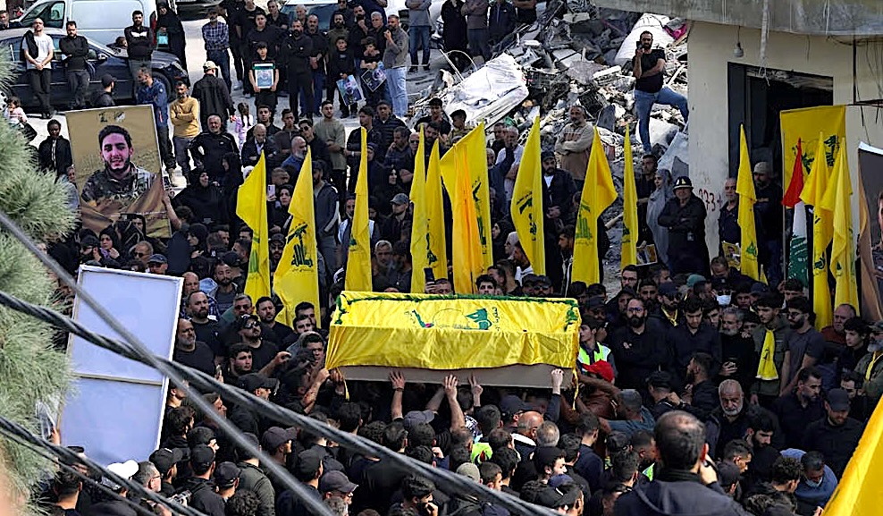 Funeral procession in Tyre, Lebanon, on April 21, 2026, for a Hezbollah fighter killed during Israel’s war on Lebanon. (Megaphone News/Wikimedia Commons/CC BY-SA 4.0)