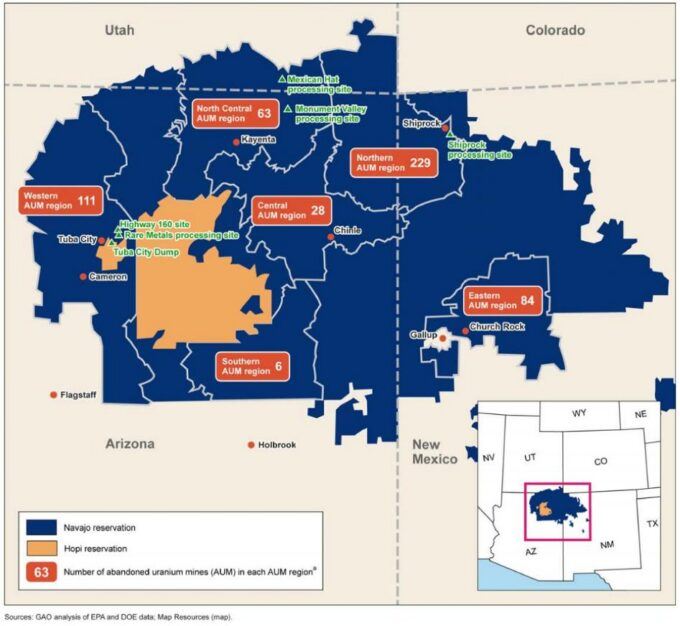 Areas affected by Abandoned Uranium Mines. Map: GAO.