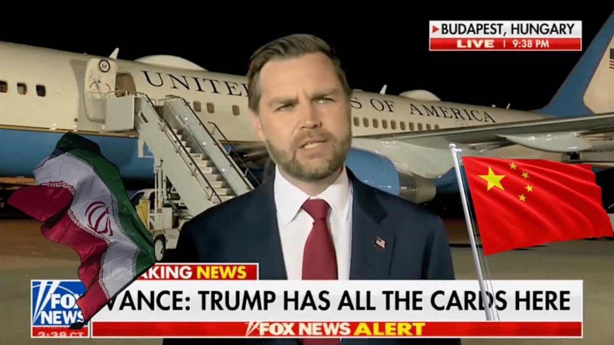 Here is Vance a few days ago before he left for the trip, openly discussing how the U.S. has “a lot of leverage”—economic and military—and warning of “serious consequences” if Iran steps out of line. Days later, that same posture of threat has turned into negotiation, rebranded as “historic” diplomacy. Vance of course is not quite a clown, not quite a clone—just a wanna be duplicate spinning in the same circus.