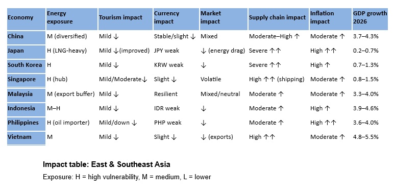 The Iran crisis is primarily an oil/LNG and supply chain shock. In East Asia, it is manifested as industrial squeeze. In Southeast Asia, it is reflected by inflation and the foreign exchange squeeze.