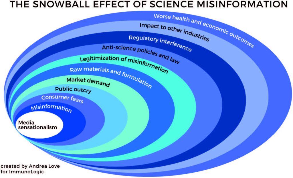 A poorly conducted study becomes a clickbait media article that misrepresents the data, the study’s flaws, and the real-world implications, and it goes viral when other outlets pick it up. The claims circulate among the public and eventually become cultural belief. When those beliefs are repeated enough, they shape consumer behavior, corporate decisions, and medical practice—even as scientists and skeptics try to correct the record.