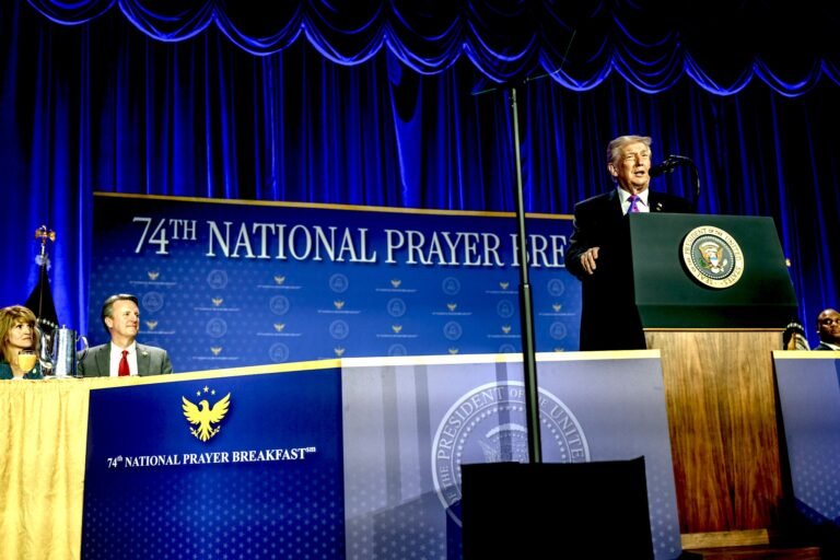 President Donald Trump addressing the National Prayer Breakfast on Feb. 5, 2026, at the Washington Hilton in Washington, D.C. (White House / Molly Riley)