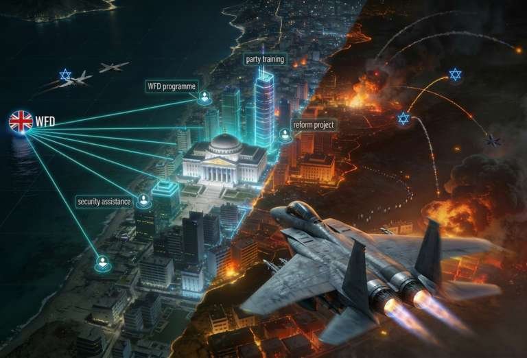 Lebanon is being disciplined through three coordinated arms operating simultaneously, like a military pincer movement, but without visible uniforms. FCDO and the British Ministry of Defense (MOD) handle military security while WFD manages political institutions, both serving Israel’s expansion strategy through a division of labor that leaves resistance isolated and vulnerable.