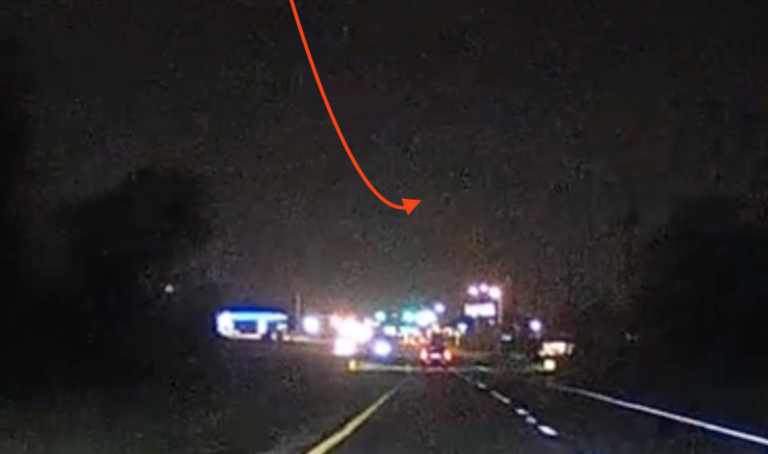 This report just in. An eyewitness was driving home and recorded this UFO coming down from the sky. The UFO actually hesitated in the sky for a split second and then continued on its way, be it began to curve and fly away from the eyewitness car. Meteors don’t change direction, but this object did. There is no doubt about this object. It’s 100% alien technology.