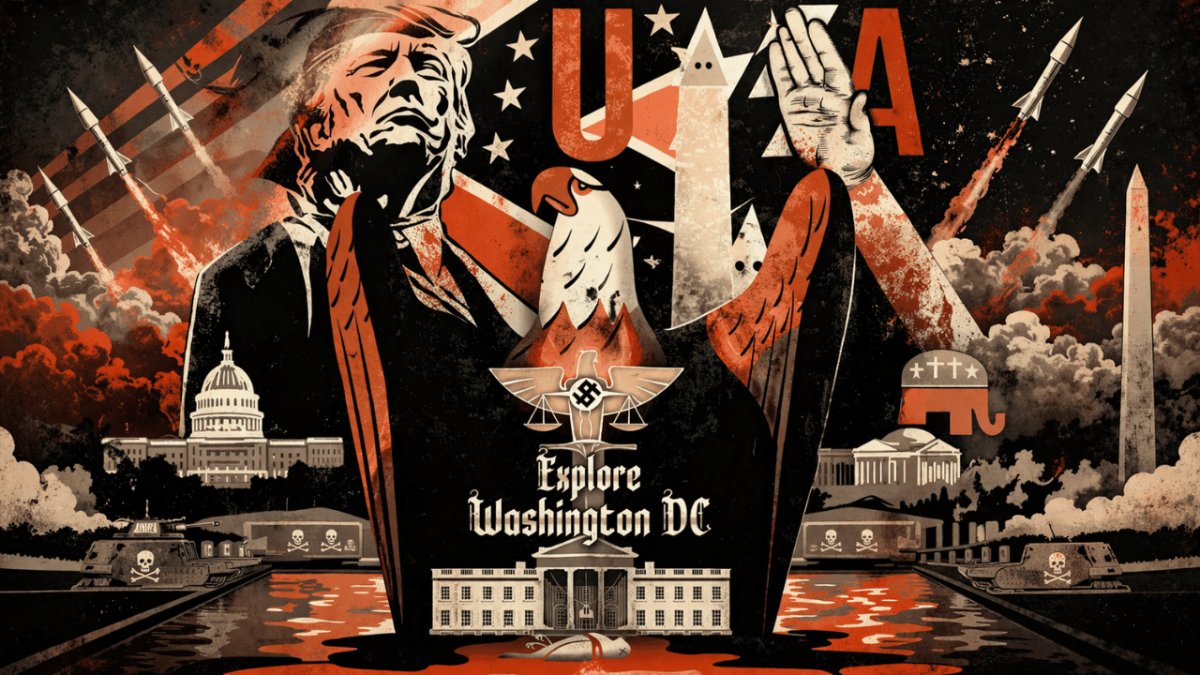 Feggo’s illustration was taken down after the Trump White House (8/21/25) attacked it as part of an “anti-American exhibition” that showed the US’s legacy of “colonization” and the history of Latino “victimhood and exploitation.” A crowing editorial in the Washington Examiner (8/24/25) asserted “the Smithsonian is long overdue for a housecleaning” over its “fashionable, culturally Marxist ideas.” The New York Times (3/28/25) described Trump’s interference with the Smithsonian as seeking “a more positive view of American history.” More positive for whom, is a question left unasked. Artist Rigoberto Gonzalez, whose “Refugees Crossing the Border Wall Into South Texas” was likewise removed, compared the administration’s censorship to the Nazi campaign against “degenerate art” (NPR, 8/24/25).